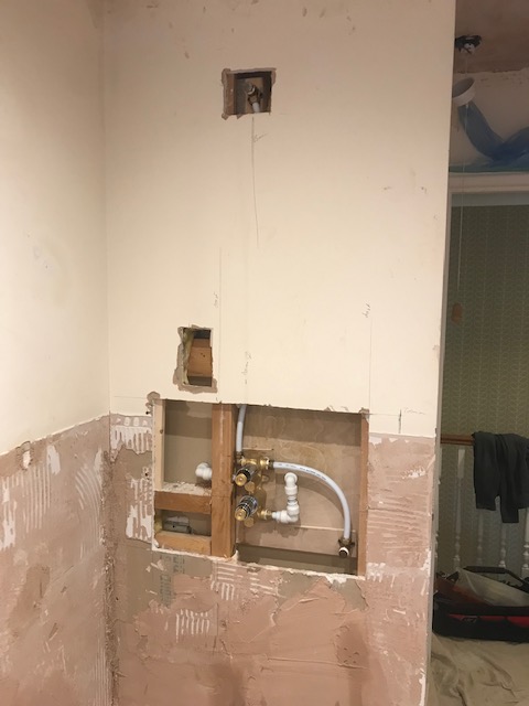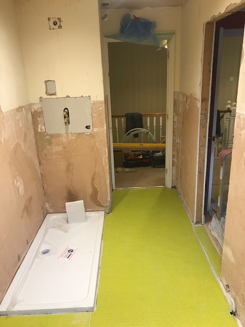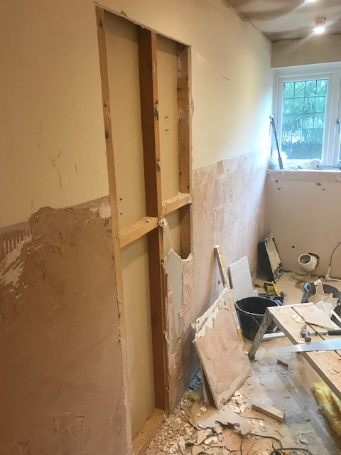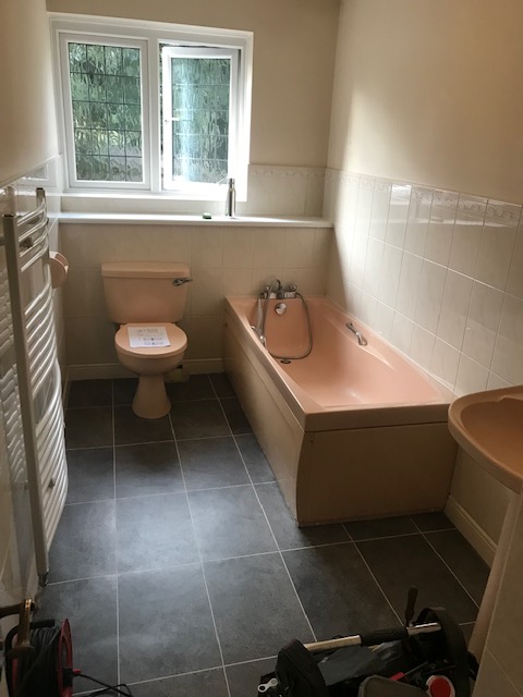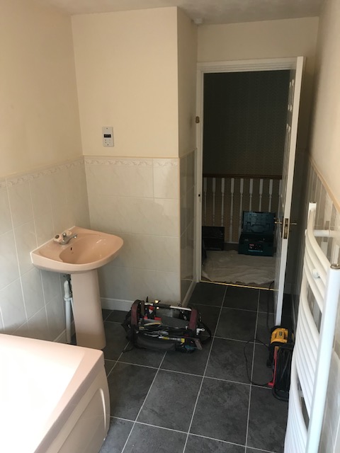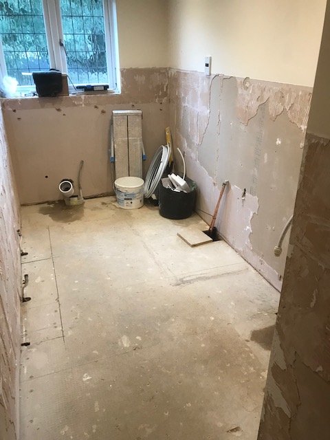 Old dated suite removed, layout and plumbing moved to accommodate new large shower area.