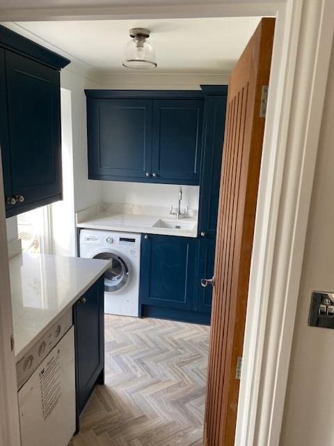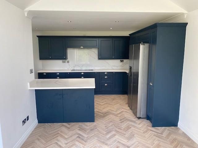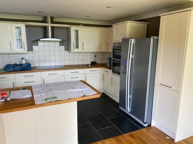 Another kitchen and utility room refit in Great Missenden. Old kitchen and floor ripped out, new lighting, units from Wren fitted and complete redecoration.