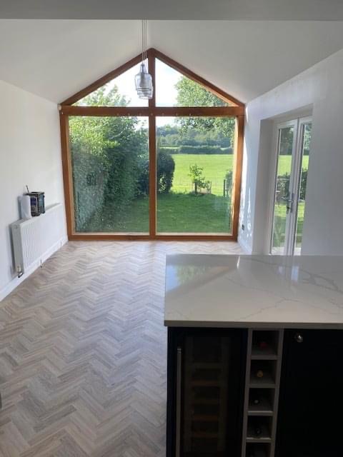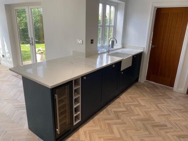 Floor laid by Yerrell Flooring, quartz worktop and splashback fitted by Alpiana Stone.